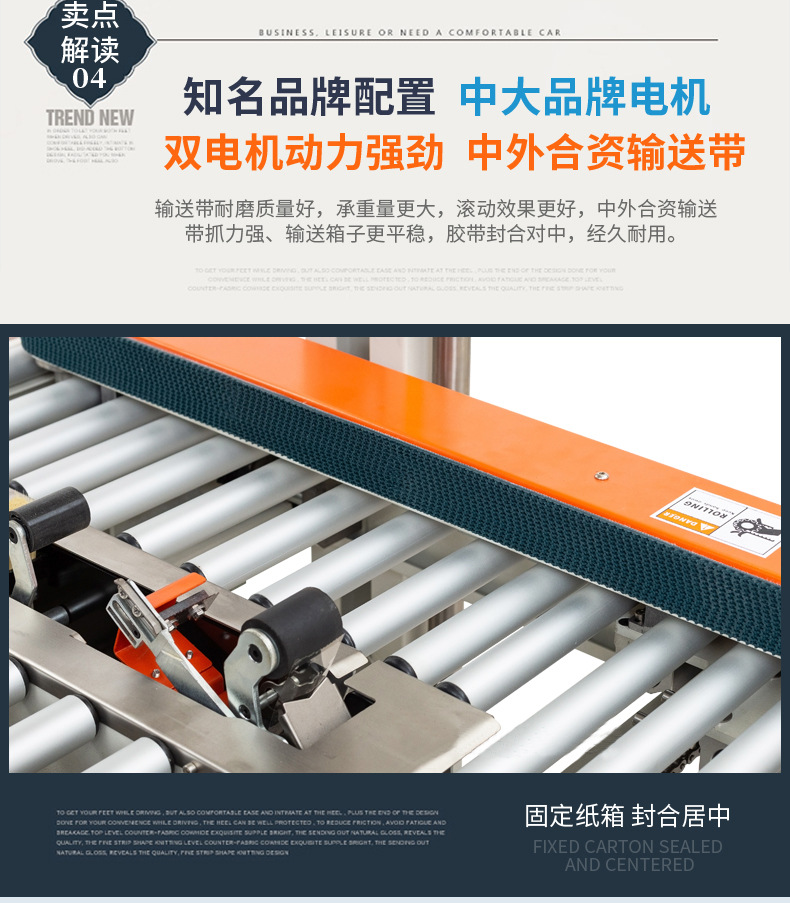 - 啟動(dòng)封箱機(jī):開(kāi)啟封箱機(jī)的電源開(kāi)關(guān),啟動(dòng)輸送帶和封箱裝置。輸送帶會(huì)帶動(dòng)紙箱向前移動(dòng),當(dāng)紙箱到達(dá)封箱位置時(shí),封箱機(jī)的膠帶分配器會(huì)自動(dòng)將膠帶粘貼在紙箱的封口處,并通過(guò)壓合裝置將膠帶壓合牢固,完成封箱操作。