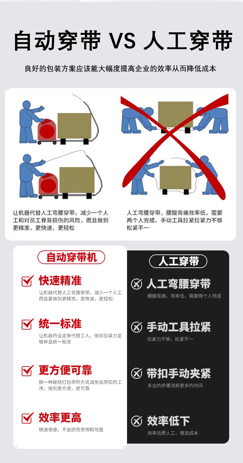 - 帶倉容量不足:如果帶倉容量過小,在連續(xù)作業(yè)時,需要頻繁更換打包帶卷,不僅影響工作效率,還可能在更換過程中導(dǎo)致打包帶安裝不規(guī)范,進(jìn)而引發(fā)卡帶或送帶不暢。可根據(jù)實際工作需求,選擇合適帶倉容量的穿帶機(jī),或者對現(xiàn)有的帶倉進(jìn)行改造,增加其容量。
