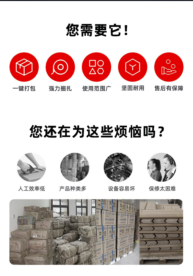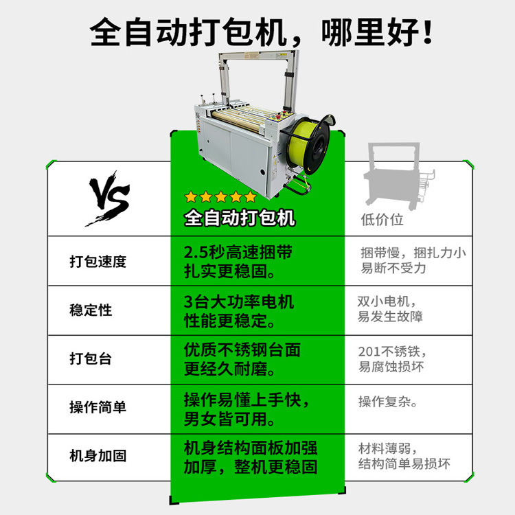 - 節(jié)省人力成本:全自動打包機幾乎可以獨立完成打包工作,只需要少量的人工進行物品的放置和機器的監(jiān)控。這大大減少了人工打包所需的人力投入,降低了人力成本,同時也減輕了工人的勞動強度。
