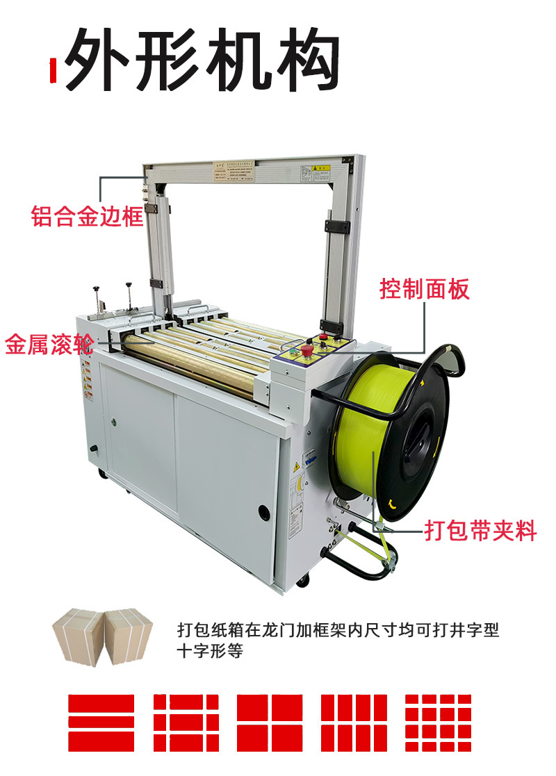 - 打包質(zhì)量穩(wěn)定:由于采用了精準的機械和電氣控制系統(tǒng),打包帶的拉緊程度、熔接質(zhì)量等都能得到很好的控制。打包帶能夠緊密地貼合在物品表面,熔接牢固,能夠有效防止物品在運輸過程中散開。這樣可以保證包裝的質(zhì)量,減少因包裝問題導致的物品損壞。