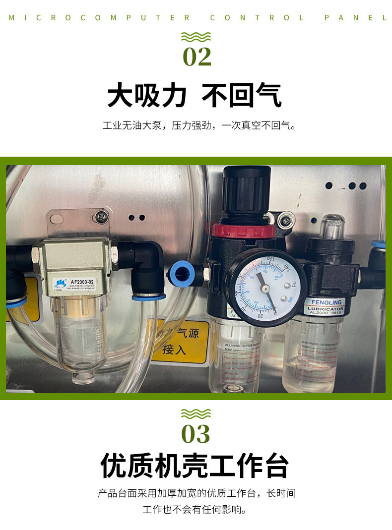 高效快速:抽氣速度較快,能夠在短時間內達到較高的真空度,大大提高了包裝效率,一般只需 2-3 秒即可完成抽氣過程,特別適合批量生產的包裝需求.