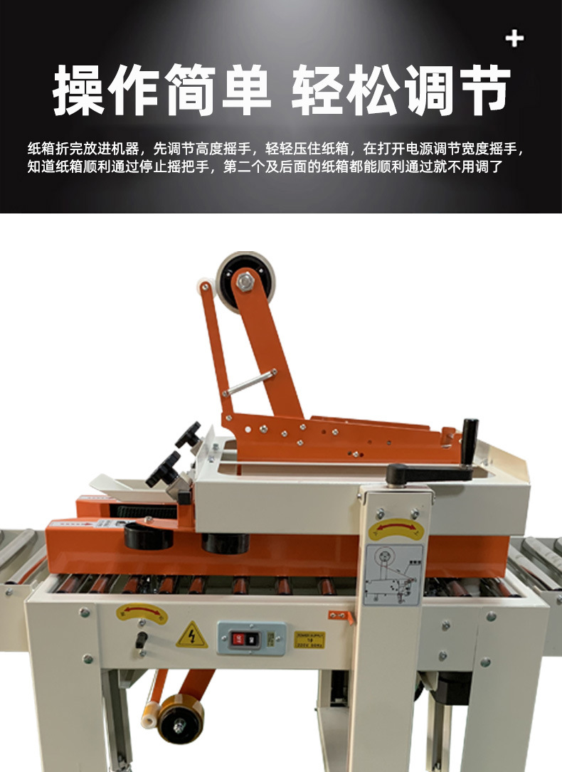 • 膠帶兼容性強:能夠兼容多種類型的膠帶,如普通的透明膠帶、彩色膠帶、印字膠帶等。企業可以根據自身的需求,如品牌宣傳、產品分類等,選擇合適的膠帶,而機器都能夠很好地與之配合,完成封箱任務