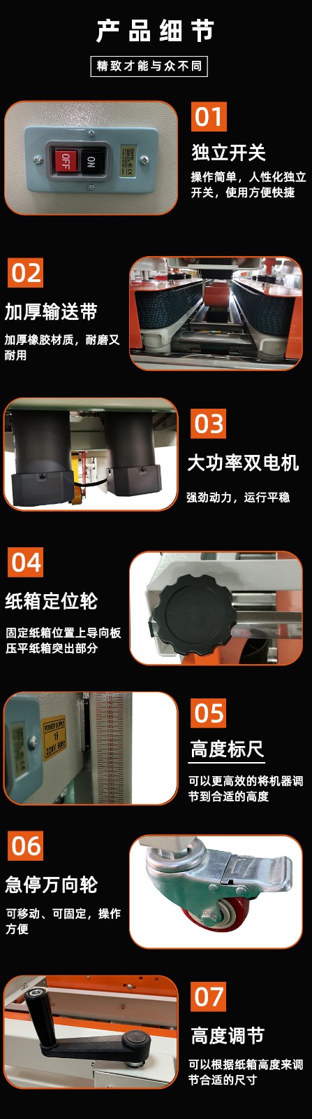 • 封口牢固性好:壓合滾輪能夠對膠帶施加合適的壓力,使膠帶牢固地黏附在紙箱上。這種牢固的封口能夠承受一定的外力,在運輸和儲存過程中,有效防止紙箱開口,保護箱內的產品。