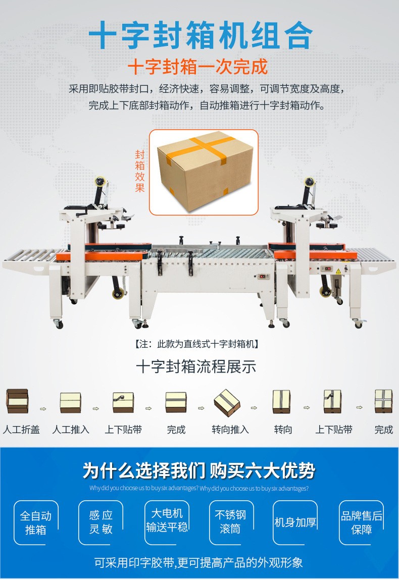 - 品牌和售后服務:選擇知名品牌的十字封箱機可以保證設備的質量和穩定性。同時,良好的售后服務也是很重要的,因為封箱機在使用過程中可能會出現故障,及時的維修和技術支持可以減少設備停機時間,降低對生產的影響。