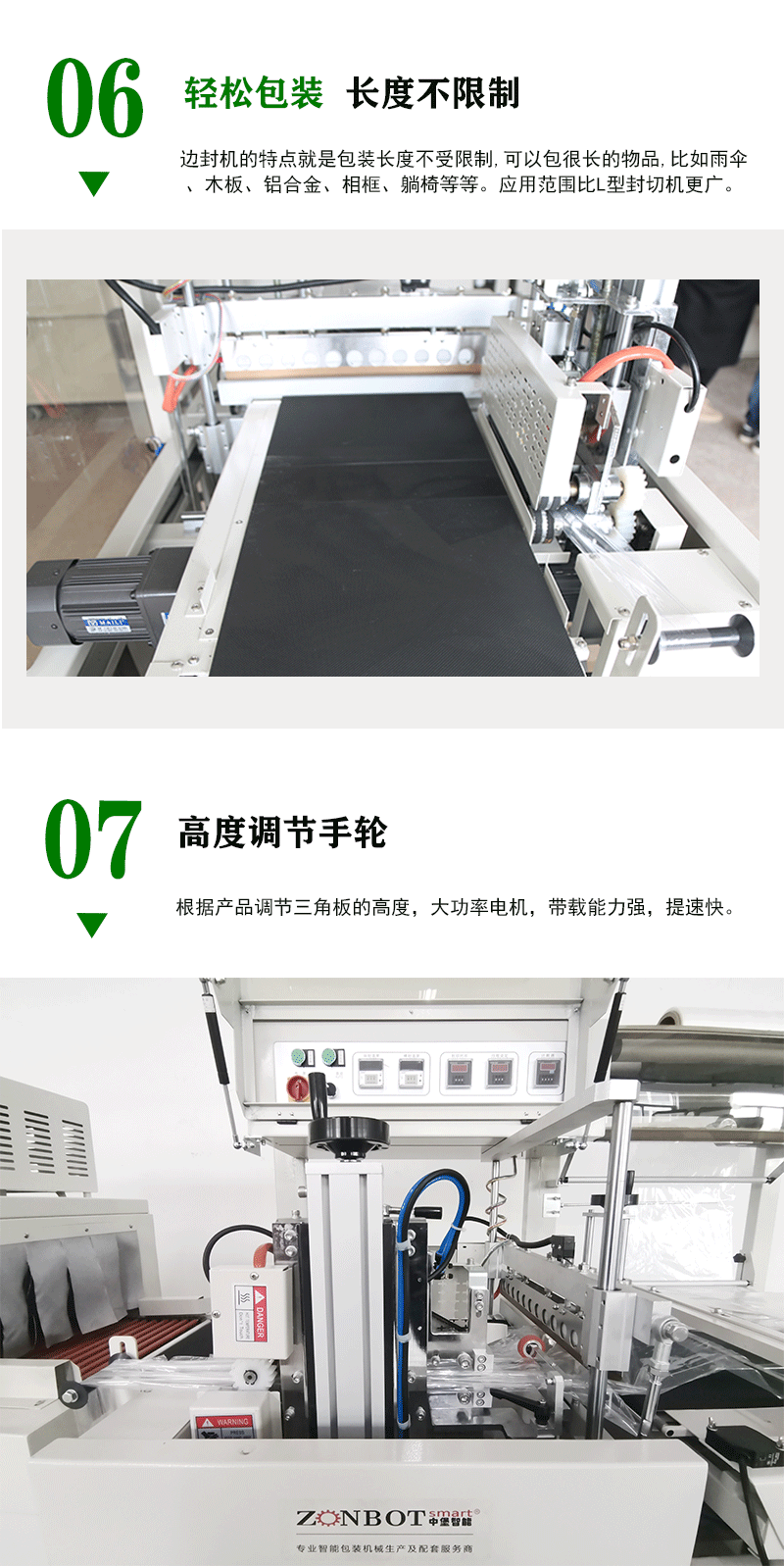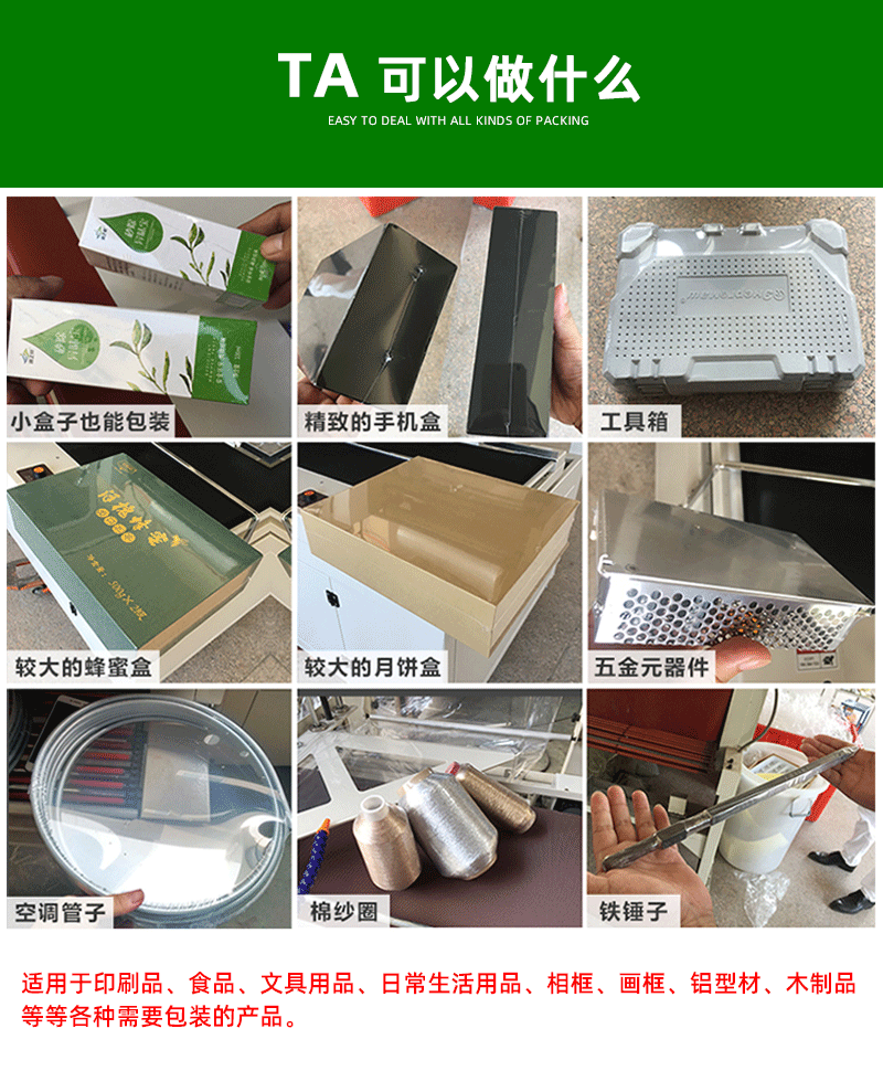 • 無論是方形的日用品、圓形的食品,還是異形的電子產品,都可以在這臺機器上進行有效的封切包裝。