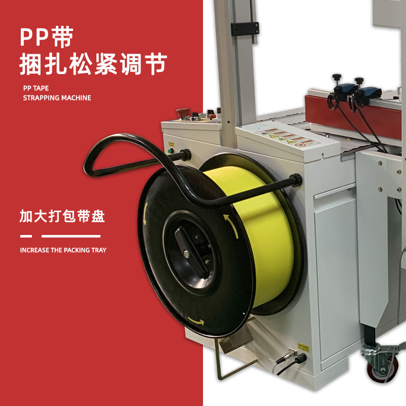- 適應性強:可以適應多種不同形狀、大小和重量的物品打包。通過調整傳送帶的速度、打包帶的供給方式和拉緊力度等參數,能夠對各種產品包裝箱、托盤貨物等進行有效打包。同時,它還能兼容多種類型的打包帶,如 PP(聚丙烯)打包帶、PET(聚對苯二甲酸乙二醇酯)打包帶、鋼帶等,根據不同的包裝需求選擇合適的打包帶。