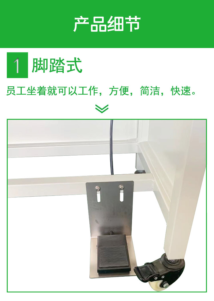- 安全節能:一些腳踏封口機設有抽吸裝置,可處理加熱產生的煙氣,減少廢氣排放;工作完成后,將熱封溫度旋鈕逆時針旋轉最低打開封機開關拔掉插頭即可 。