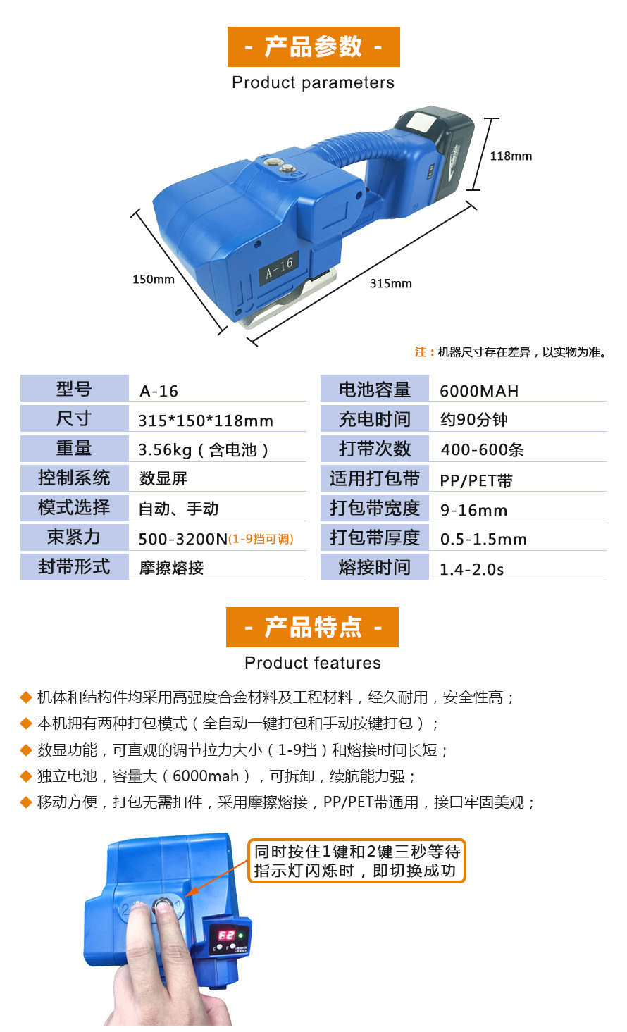 • 電池保養:對于使用電池供電的手提電動打包機,要注意正確充電和使用方法,避免過度充電或過度放電,以延長電池使用壽命 。