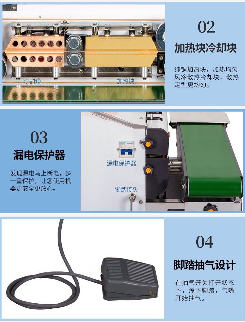 - 連續(xù)輸送系統(tǒng):具備穩(wěn)定且高效的輸送機(jī)構(gòu),如輸送帶、滾輪或鏈條等,確保產(chǎn)品能夠持續(xù)、平穩(wěn)地通過抽真空和封口工位,實(shí)現(xiàn)連續(xù)包裝作業(yè),提高生產(chǎn)效率。