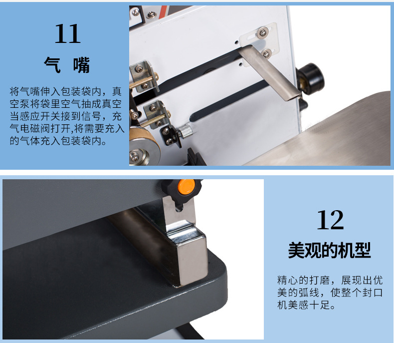 - 多個(gè)真空室或抽氣口:為了滿足連續(xù)包裝的需求,通常配備多個(gè)真空室或分布合理的抽氣口,可同時(shí)對多個(gè)包裝袋進(jìn)行抽真空操作,縮短單個(gè)包裝的循環(huán)時(shí)間 。