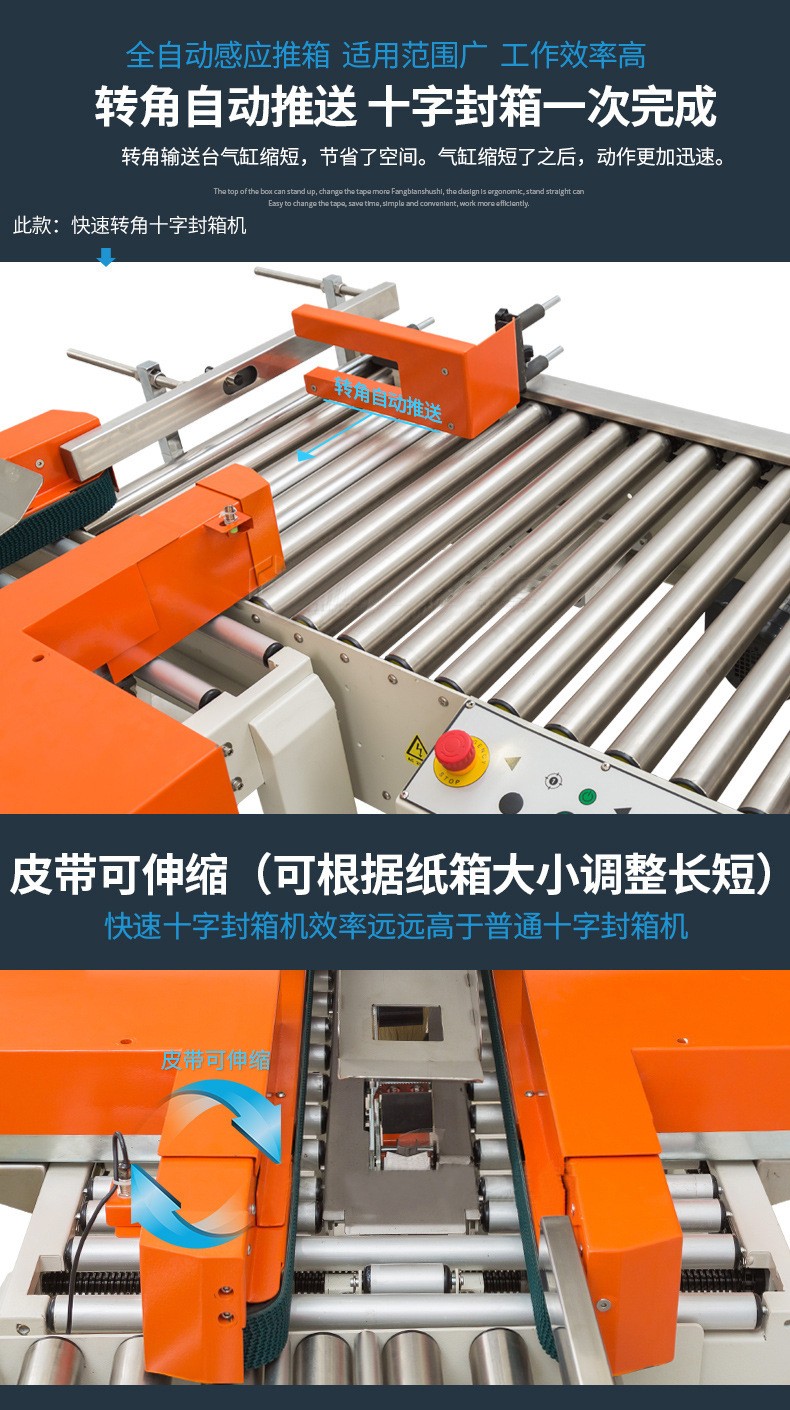 - 機(jī)器操作步驟少:十字封箱機(jī)操作相對簡單,工人只需將紙箱放置在指定位置或輸送帶上即可,機(jī)器會自動完成膠帶的切割、粘貼和撫平等復(fù)雜操作。一些先進(jìn)的十字封箱機(jī)還具備自動感應(yīng)紙箱尺寸、自動調(diào)整封箱參數(shù)的功能,進(jìn)一步減少了操作步驟。