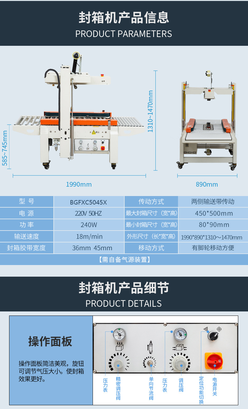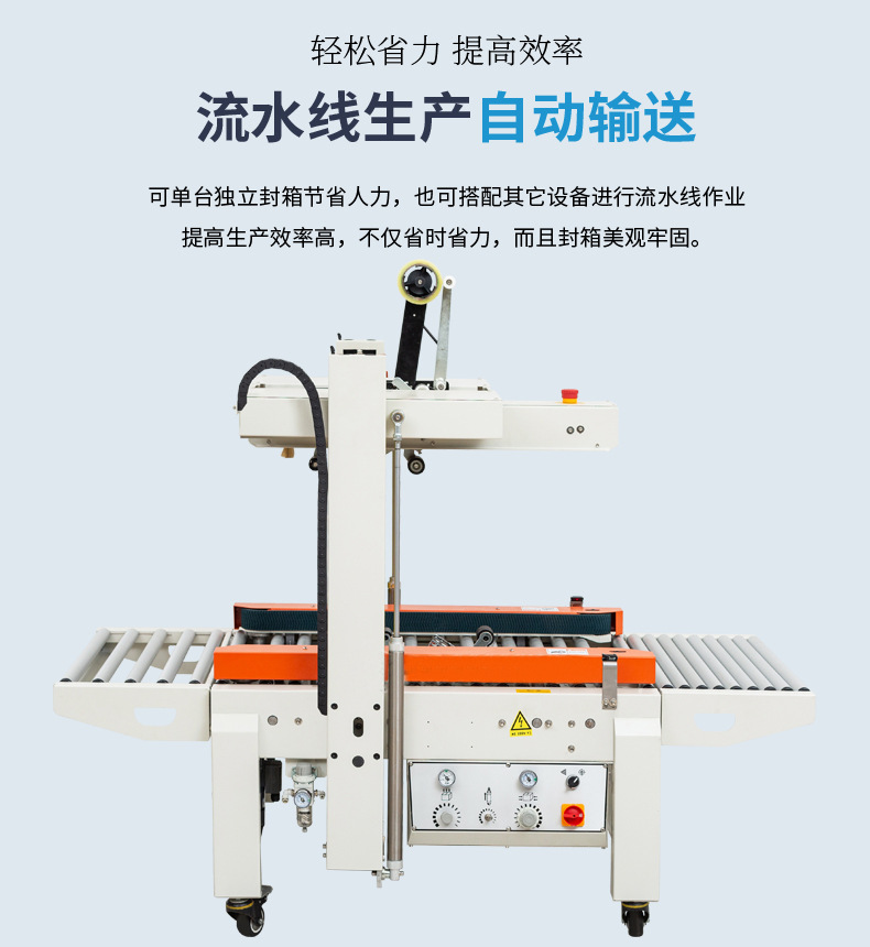 是的,全自動封箱機可自動完成紙箱輸送、定位、折蓋、封箱等全流程操作,以下是其各環節的簡要介紹: