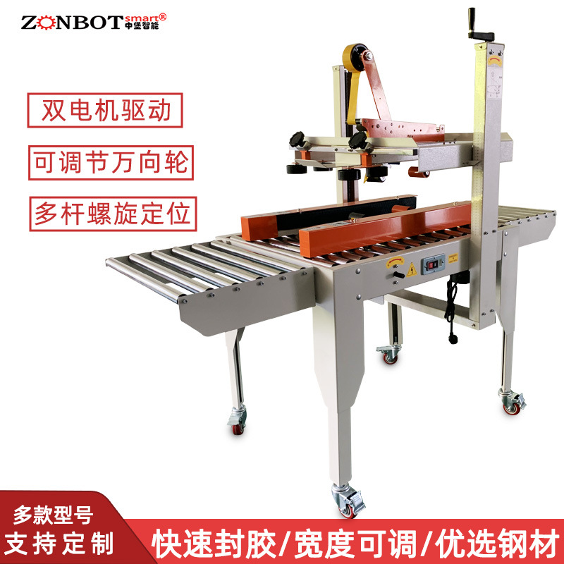 在參數(shù)設(shè)置方面,操作簡(jiǎn)單易懂。工人通過(guò)幾個(gè)明確標(biāo)識(shí)的按鍵,便能輕松對(duì)封箱速度、膠帶長(zhǎng)度等關(guān)鍵參數(shù)進(jìn)行調(diào)整。例如,封箱速度可依據(jù)實(shí)際生產(chǎn)需求,在操作面板上以遞進(jìn)式的數(shù)字調(diào)節(jié)方式,從每分鐘 10 箱逐步提升至每分鐘 60 箱不等,以適配不同產(chǎn)量要求的生產(chǎn)線節(jié)奏。膠帶長(zhǎng)度設(shè)置則通過(guò)數(shù)字輸入框,精確設(shè)定每次截取膠帶的長(zhǎng)度,確保既不浪費(fèi)膠帶,又能完全覆蓋紙箱封口。