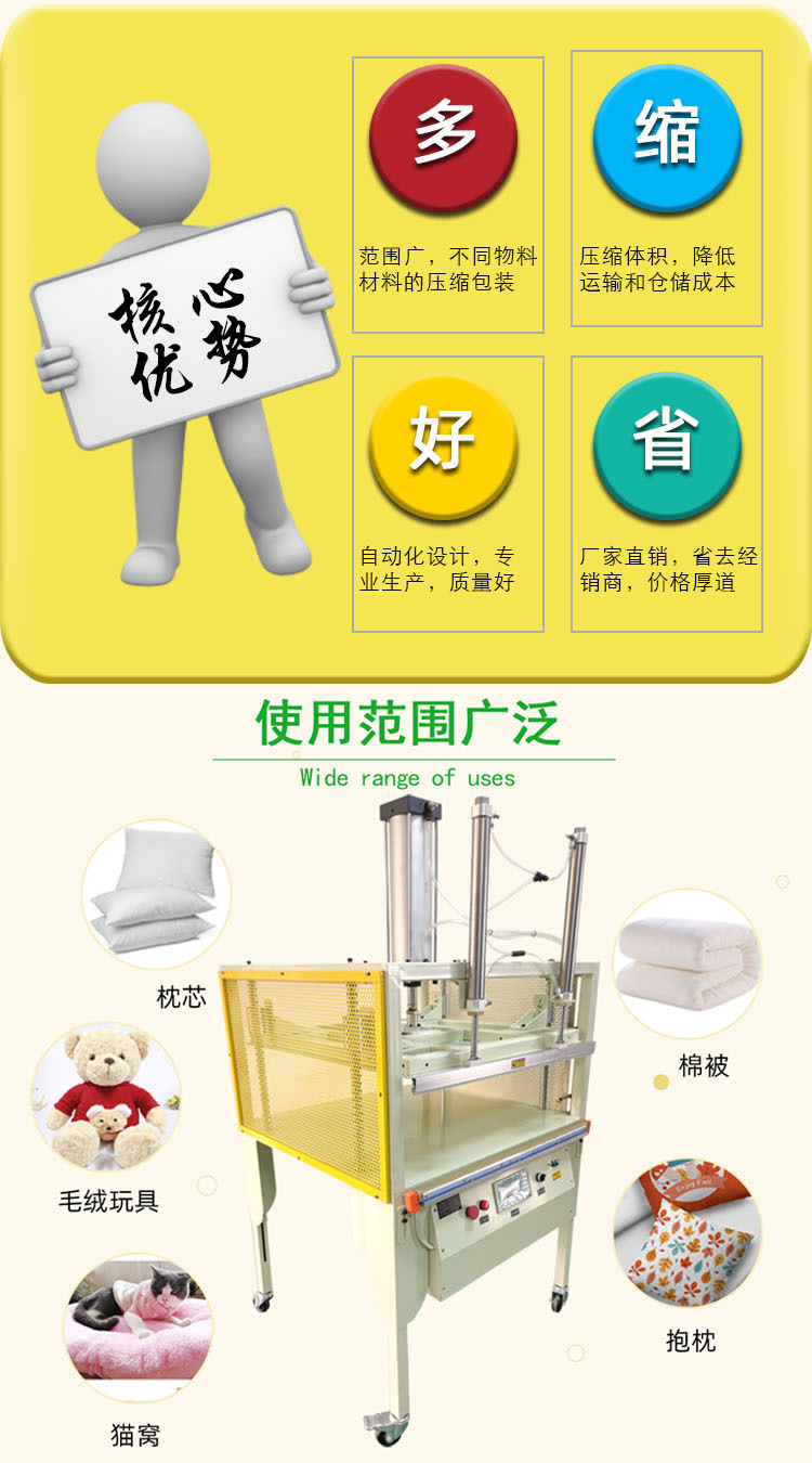 • 壓縮真空封口機:適用于對保鮮、防潮、防氧化要求較高的產品,如食品、電子元件、藥品、化工原料等。例如,食品行業中的肉類、海鮮、干貨等,電子行業中的電路板、芯片等。