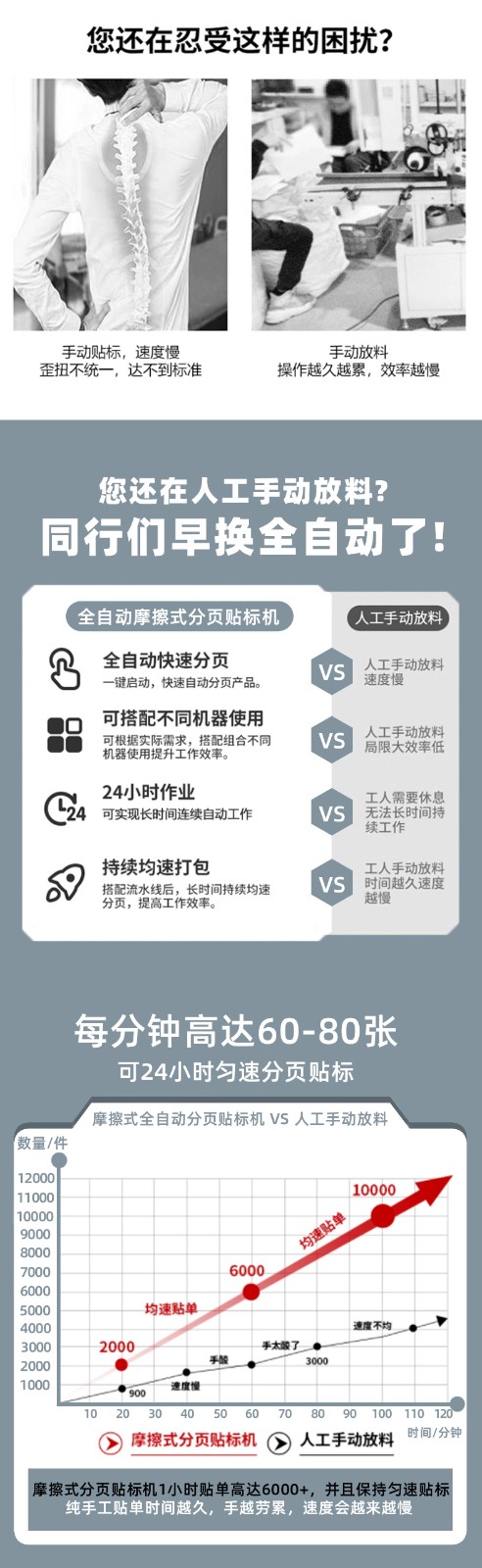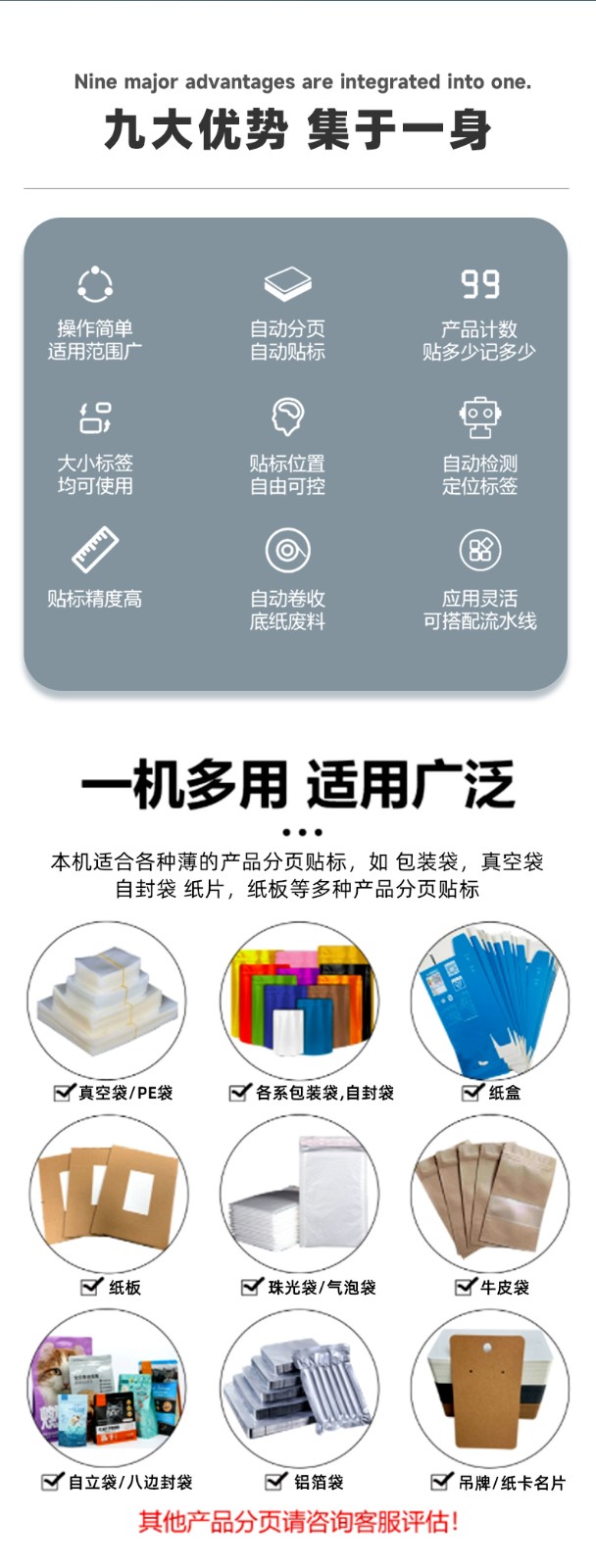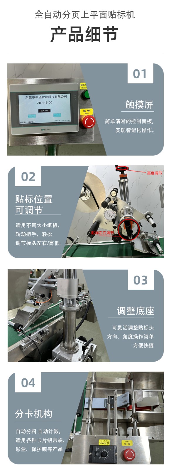 全自動(dòng)分頁(yè)貼標(biāo)機(jī)的工作原理是通過(guò)機(jī)械、電氣和氣動(dòng)等多種技術(shù)的協(xié)同作用,實(shí)現(xiàn)對(duì)標(biāo)簽的自動(dòng)分頁(yè)、輸送和準(zhǔn)確貼附到產(chǎn)品上的過(guò)程。以下是其詳細(xì)的工作原理: