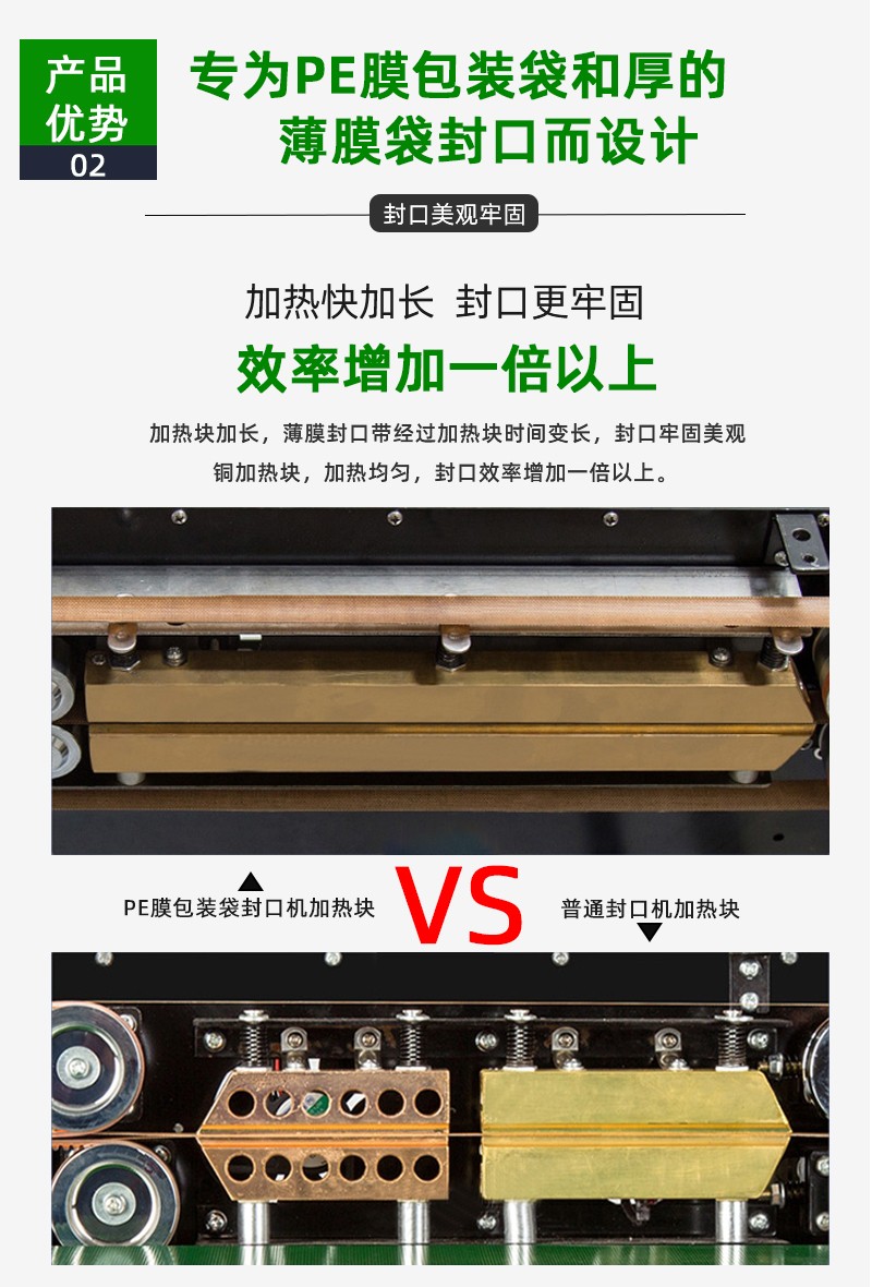 • 封口時間過長,不僅會降低生產效率,還可能使包裝材料過熱,導致封口處老化、變脆,影響封口的柔韌性和耐用性。