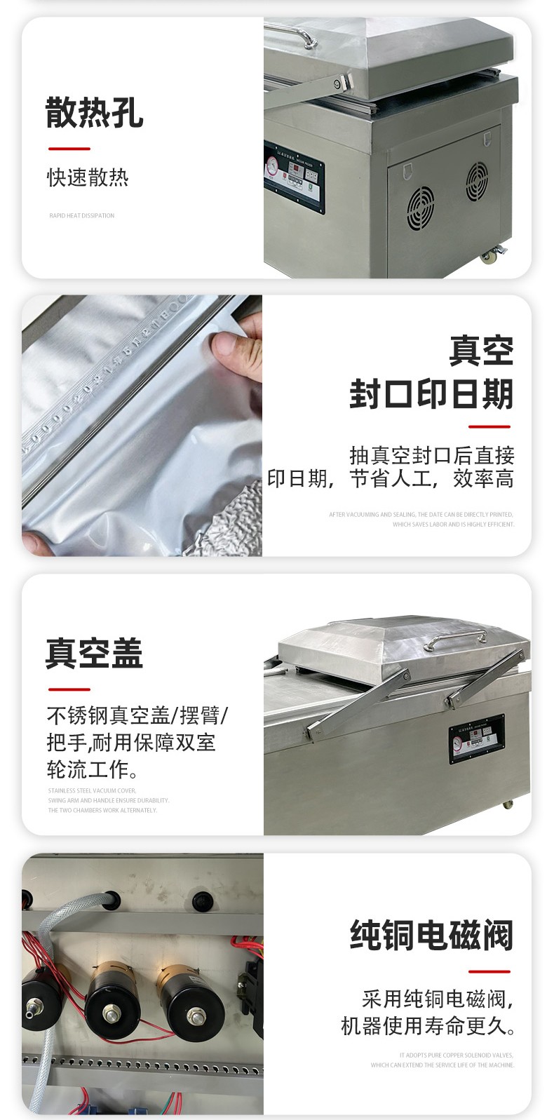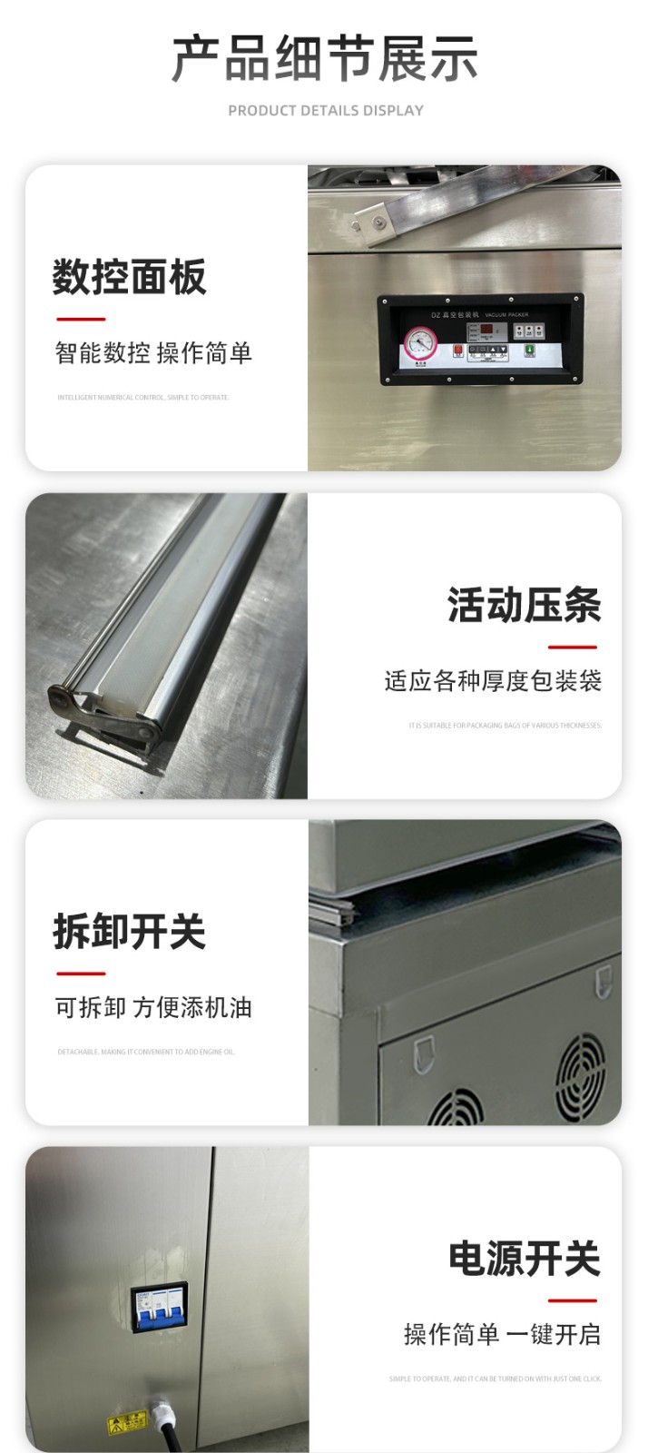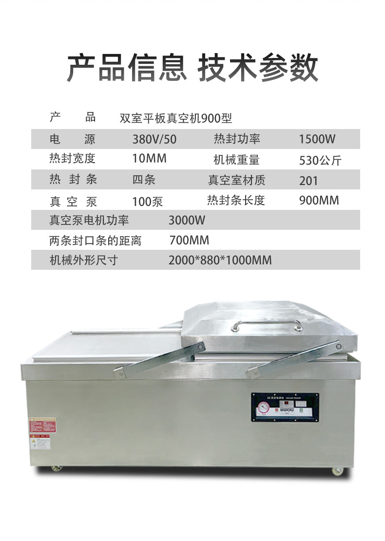 雙室平層真空包裝機(jī)的操作流程并不復(fù)雜,通常包括以下步驟: