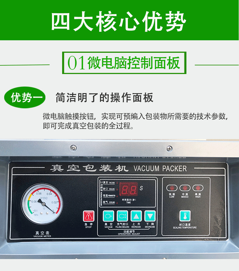 3. 啟動操作:壓下機蓋,面板上的抽氣指示燈亮起,真空泵開始抽氣,機蓋自動吸附固定。