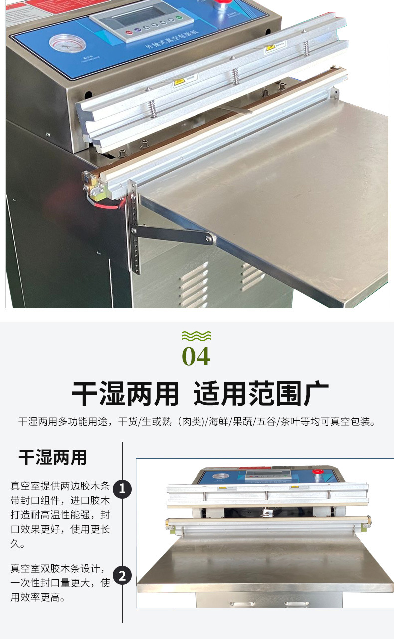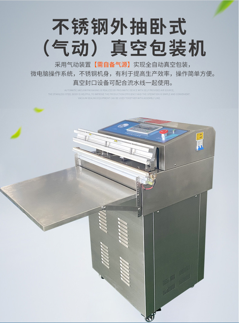 氣動外抽真空包裝機主要由真空泵等部件組成,負責抽出包裝袋內(nèi)的空氣,形成真空環(huán)境