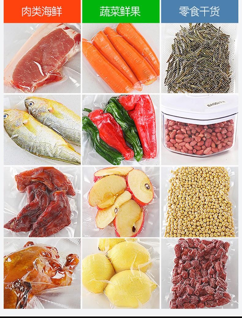- 食品行業(yè):用于肉類、海鮮、水果、蔬菜、茶葉、大米、調(diào)味品等食品的真空包裝或氣調(diào)包裝,能夠防止食品氧化變質(zhì)、延長保質(zhì)期、保持食品的新鮮度和口感25。