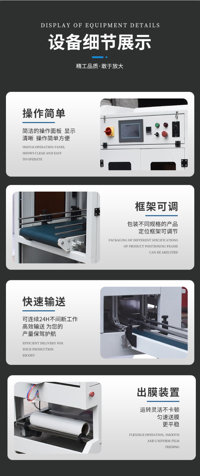 • 適應性與靈活性:這種包裝機對產(chǎn)品的形狀、尺寸和包裝材料的適應性較強。它可以通過簡單地調(diào)整機器參數(shù)來包裝各種形狀(如正方體、長方體、圓柱體甚至不規(guī)則形狀)和不同尺寸的產(chǎn)品。同時,它能夠兼容多種包裝材料,包括不同厚度、材質的塑料薄膜等。相比一些專用包裝機,它的靈活性更高,能夠滿足企業(yè)多樣化的包裝需求。