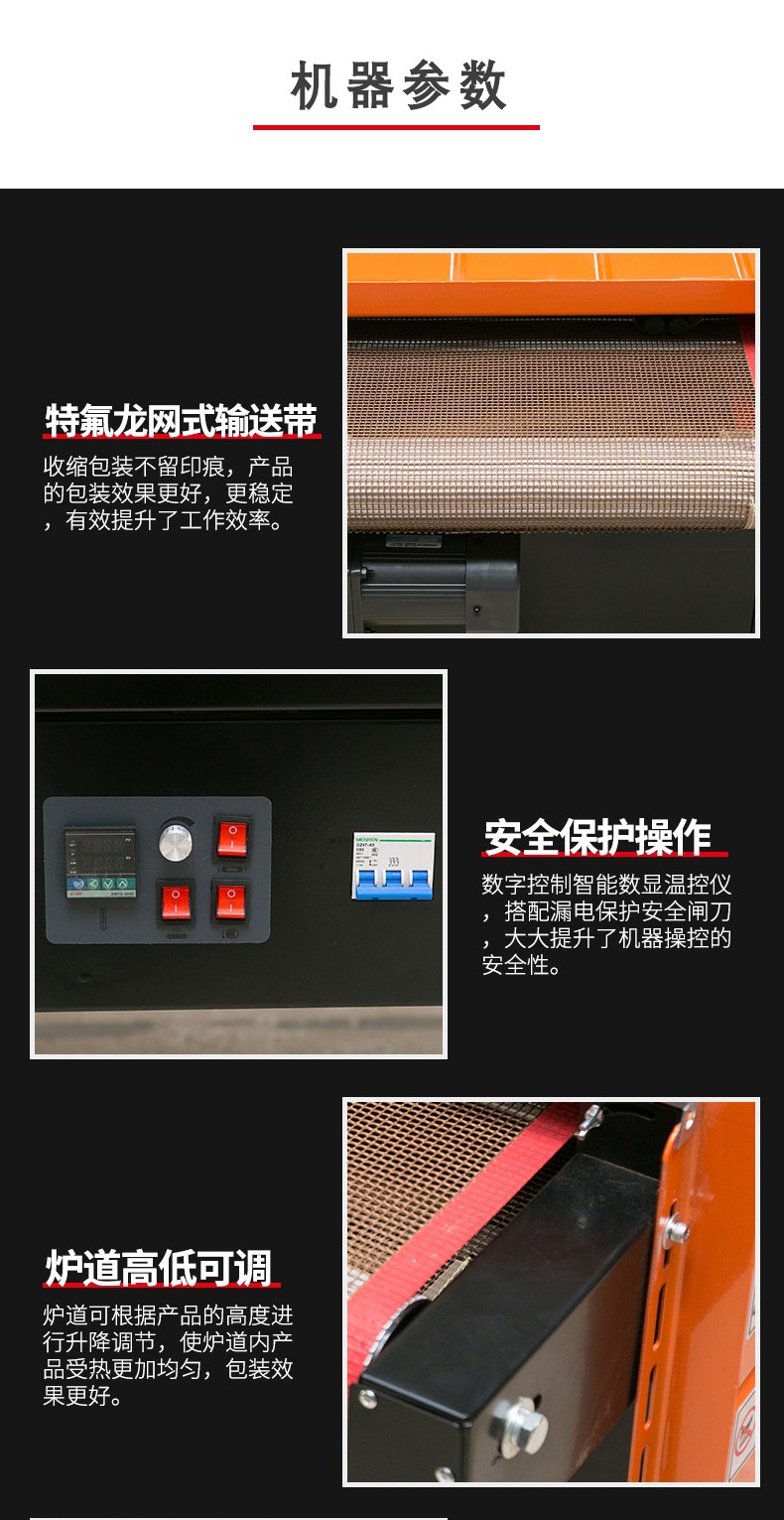 • 收縮溫度范圍:一般為 120 - 200℃。不同的熱收縮薄膜有不同的最佳收縮溫度,在選型時(shí)要考慮機(jī)器的溫度范圍是否能夠滿足所使用薄膜的要求。例如,PVC 薄膜的收縮溫度一般在 140 - 160℃,POF 薄膜的收縮溫度約為 160 - 180℃。