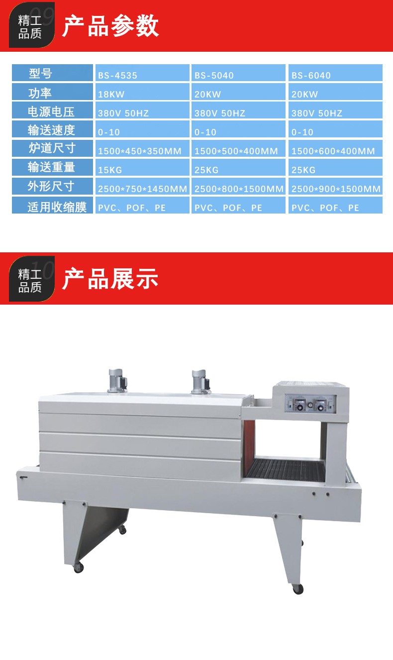 - 輸送系統:主要包括輸送帶和驅動電機。輸送帶用于承載和輸送被包裝的產品,其材質通常是耐高溫的橡膠或特殊的合成材料,以適應加熱區域的高溫環境。驅動電機能夠精確控制輸送帶的速度,從而調整產品在加熱區域的停留時間,以滿足不同產品和薄膜的收縮要求。