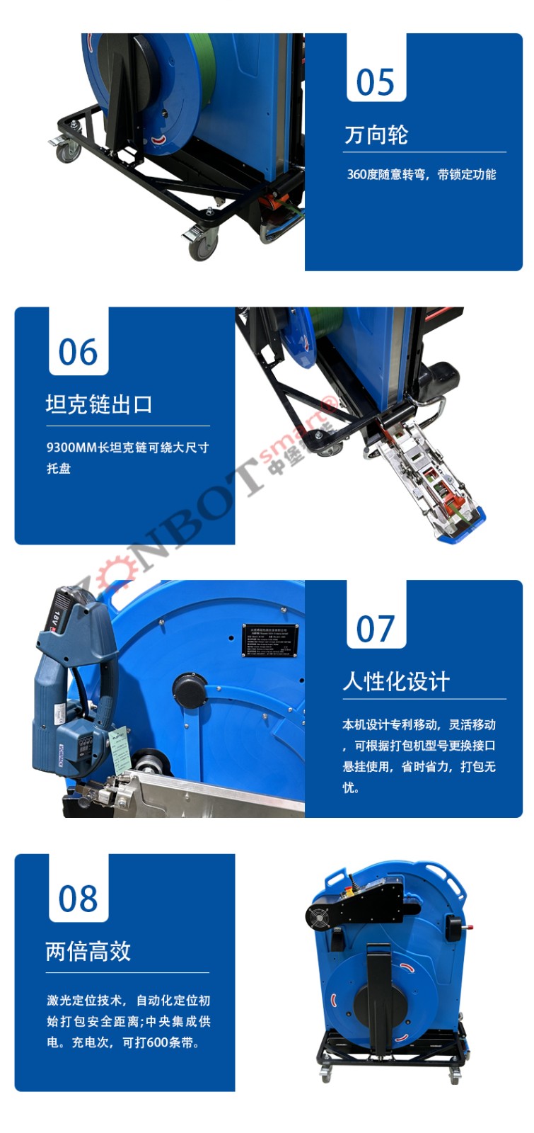 - 導向系統:由多個導向輪和導軌組成。導向輪一般是可以靈活轉動的滾輪,它們可以根據打包帶的寬度和穿帶路徑進行調整。導軌則是為打包帶提供了一個固定的通道,確保打包帶沿著預定的路線行進。比如,當打包帶需要轉彎時,導向輪會將其引導到合適的軌道上。