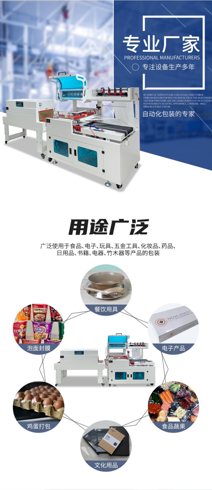 全自動 L 型封切熱收縮包裝機(jī)是一款集 “封切套膜” 與 “熱收縮定型” 于一體的自動化包裝設(shè)備,因封切機(jī)構(gòu)呈 “L” 形而得名,廣泛應(yīng)用于食品、醫(yī)藥、電子、日化等行業(yè),核心優(yōu)勢是包裝效率高、密封性好、外觀規(guī)整,能快速實現(xiàn)產(chǎn)品的單件或集合包裝,尤其適配規(guī)則形狀(如長方體、圓柱體)及中小型尺寸產(chǎn)品。下面從核心工作原理、關(guān)鍵結(jié)構(gòu)組成、核心優(yōu)勢、適用場景、選型與操作注意事項五個維度,全面介紹該設(shè)備: