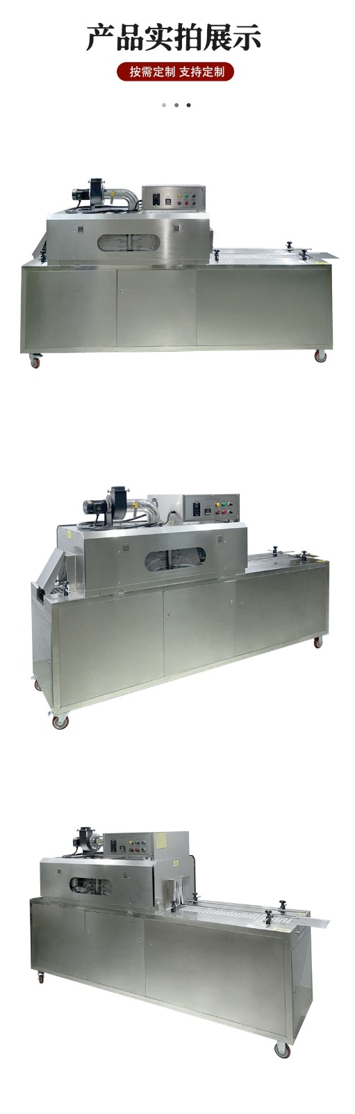 - 前期準備與輸送:先人工或自動化設備將套好收縮膜(如 PVC、PET 膜)的產品放置在輸送帶上,輸送帶通過無級調速系統(tǒng)啟動,將產品勻速送入收縮通道。