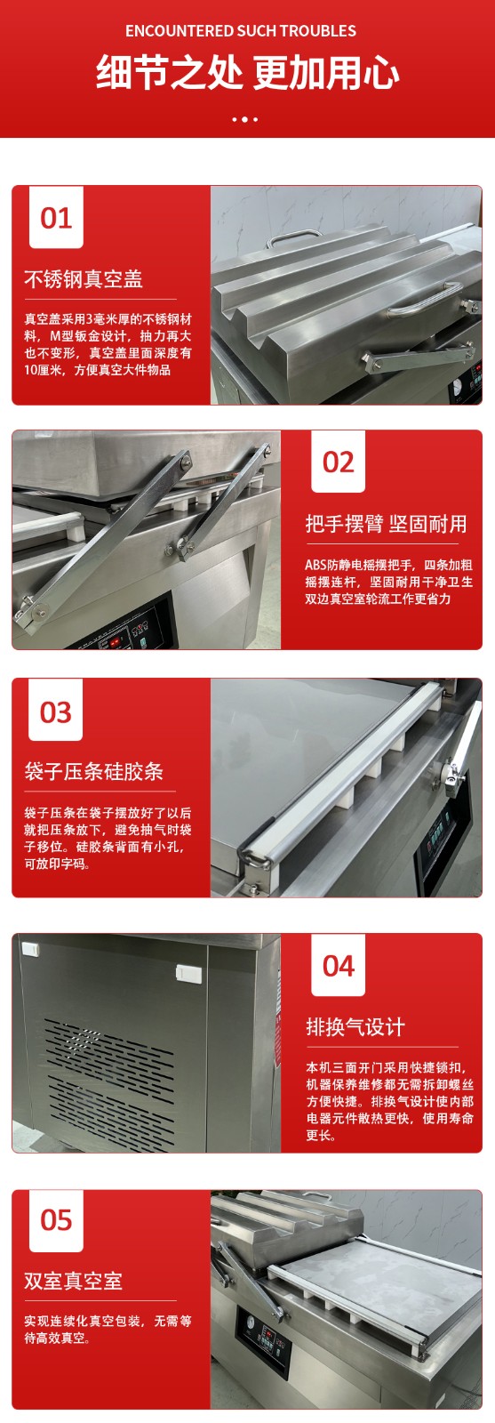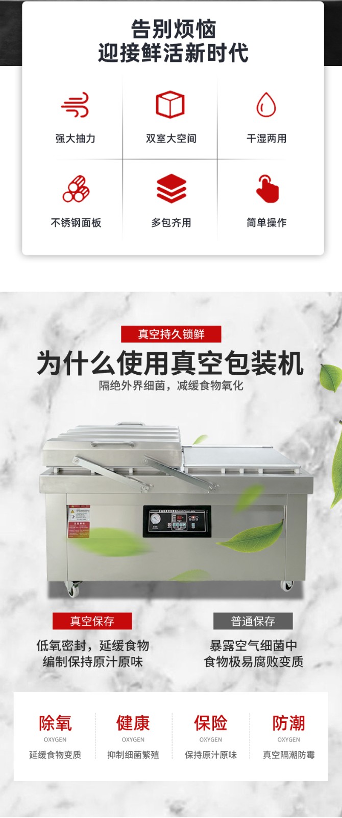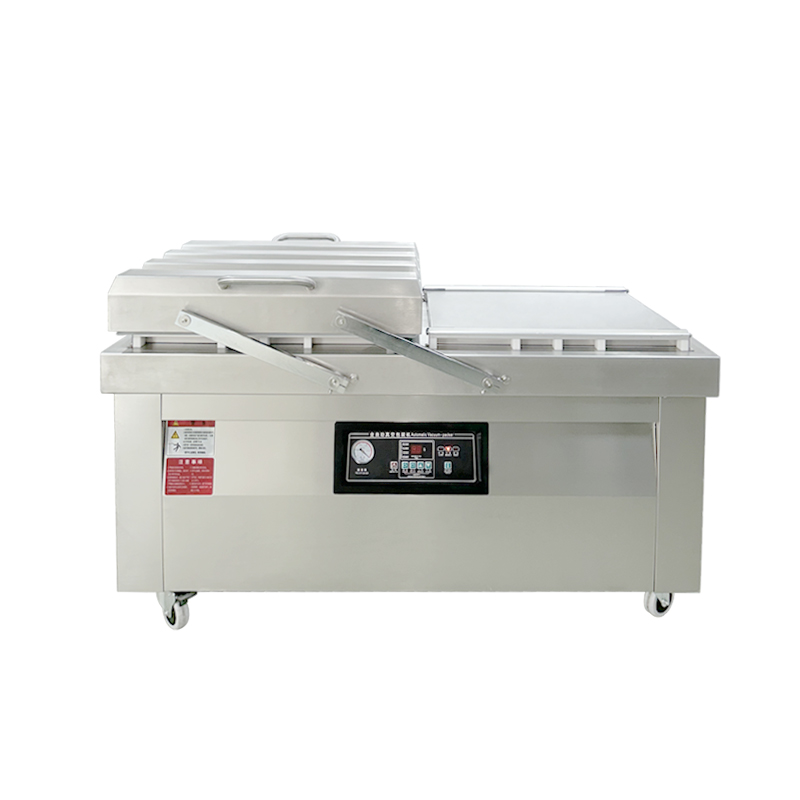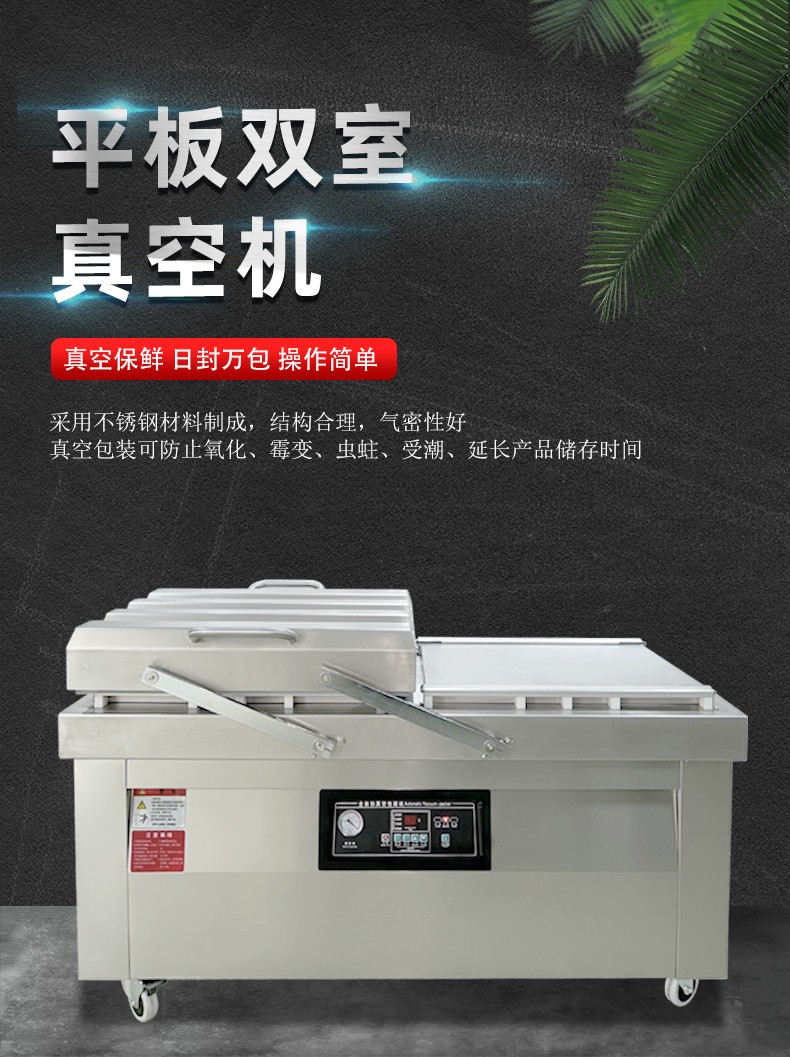 雙室真空包裝機(jī)通過 “雙真空室輪換作業(yè)” 實(shí)現(xiàn)抽真空與裝袋無縫銜接,核心是利用兩個(gè)獨(dú)立真空室的 “時(shí)間差并行操作”,讓設(shè)備在同一周期內(nèi)同時(shí)完成 “抽真空密封” 和 “人工 / 自動(dòng)裝袋”,徹底消除單室機(jī)型 “抽真空時(shí)無法裝袋” 的等待間隙,大幅提升作業(yè)效率。其具體運(yùn)作邏輯和優(yōu)勢可拆解為以下 3 點(diǎn):