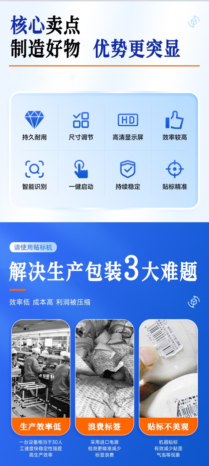- 應用場景:適配圓形瓶、方形瓶、橢圓形瓶等不同形狀容器,尤其解決異形瓶因輸送時 “偏移、旋轉” 導致的套標歪斜問題。