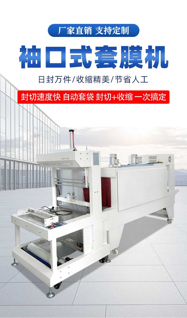 自動送膜與成型:設備通過送膜機構精準釋放熱收縮膜,如 PE、POF 材質等,并利用袖口成型裝置將膜材環繞產品形成 “袖口” 狀包裹,支持左 / 右進料、多排組合包裝等模式,可適配不同形狀的瓶罐或盒裝產品。