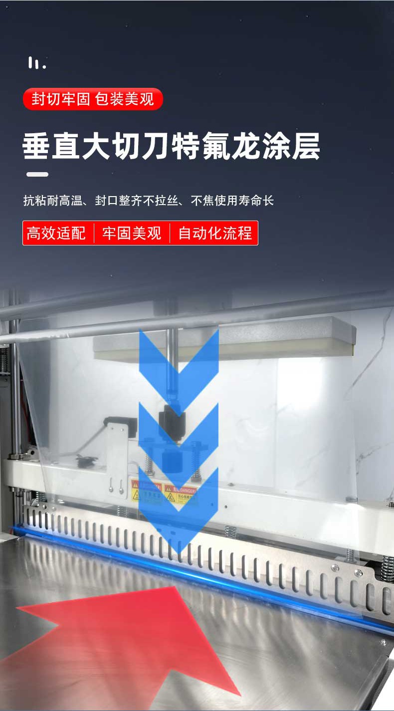 封切與密封:采用恒溫封刀技術,如抗粘耐高溫合金刀片,在設定溫度與壓力下完成封口,確保密封牢固且不粘刀、不開裂。部分機型配備 PLC 控制系統,可實時調節封切時間和壓力,以適配不同膜材厚度。