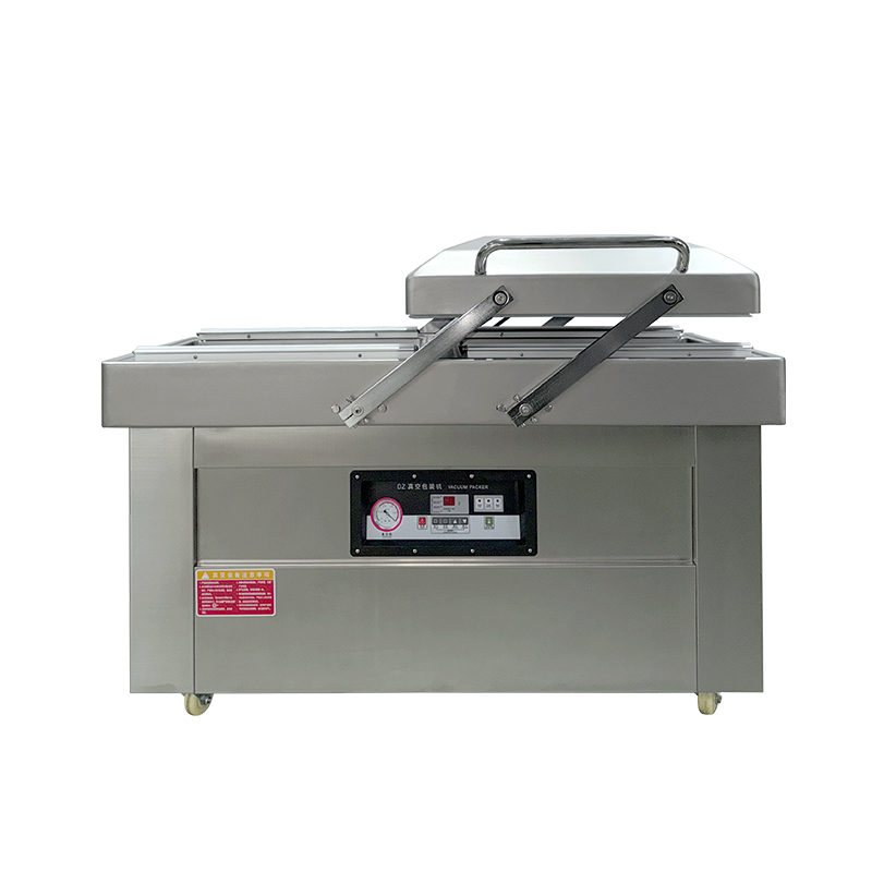 雙室凹槽真空包裝機是一種高效的真空包裝設備,廣泛應用于食品、電子等行業。雙室凹槽真空包裝機通過抽氣泵將袋子內的空氣抽走,形成真空狀態,然后通過熱封機將袋子密封。其主要由真空泵、真空室、熱封機和電控系統組成。具體工作步驟為:將食品放入袋子并置于真空室后,按下啟動按鈕,真空泵抽取袋子內空氣,達到設定真空度后,熱封機進行封口操作,封口完成后設備自動停止。