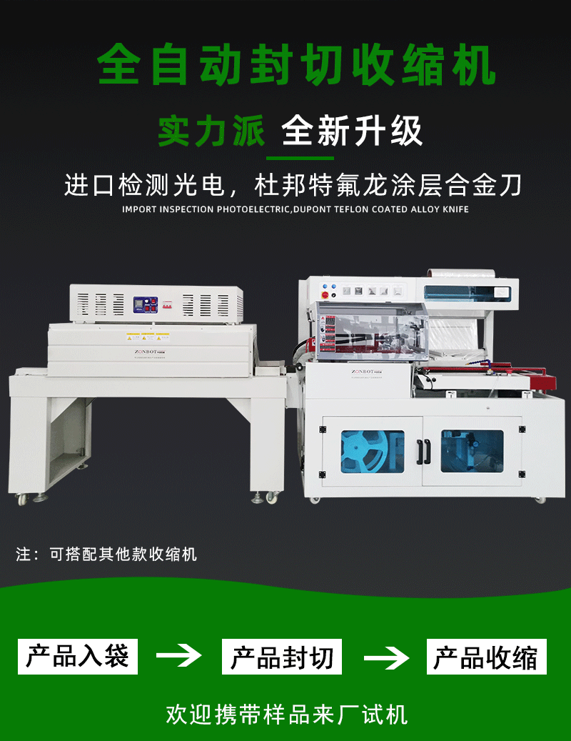 封切機(jī)是全自動無人化操作的包裝機(jī),廣泛用于批量生產(chǎn)包裝的流水作業(yè),工作效率高,自動送膜打孔,自動套膜封切,自動卷取廢料;只需手動調(diào)節(jié)導(dǎo)膜系統(tǒng)以及手動調(diào)節(jié)進(jìn)料輸送平臺,適用不同寬度及高度的產(chǎn)品。